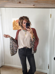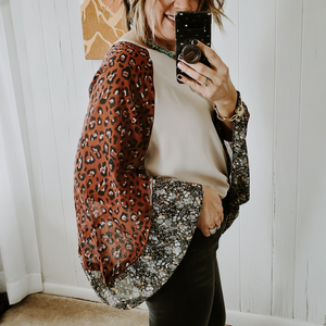 Leopard/floral contrasting sleeves