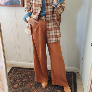 Paula is 5'7" 140lbs 29" natural waist and is wearing a medium