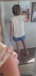 Embroidered flutter sleeves