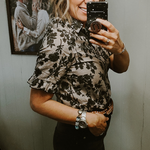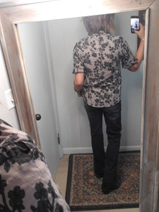 Fits true to size IF YOU ARE BUSTY THIS MAY BE VERY SNUG OR THE BUTTONS MAY PULL