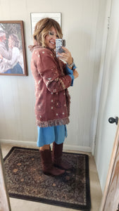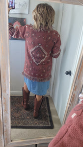Shawl collar with fringe trim