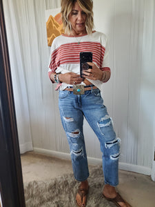 Fit true to size, this is a boyfriend fit so they're relaxed