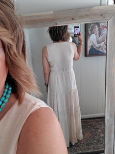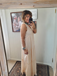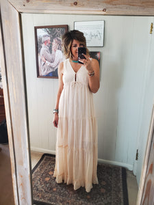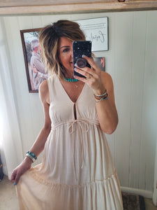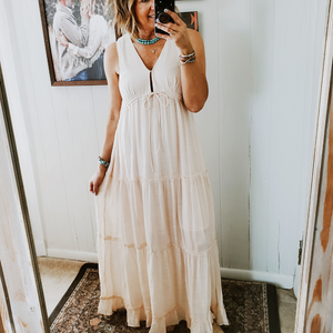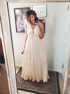 TIERED RUFFLE DETAIL MAXI DRESS WITH DRAWSTRING
