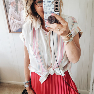 • Multi color stripes with gold accent stripe