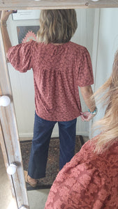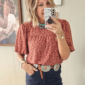 BURNOUT LACE BABYDOLL WOVEN TOP