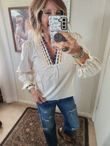 V neck with ric rac embellishments