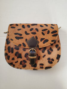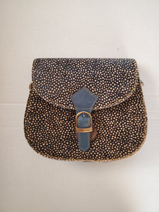 Genuine leather bag featuring full hair on hide front. Handmade in India.