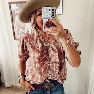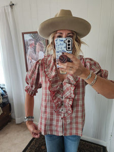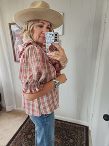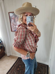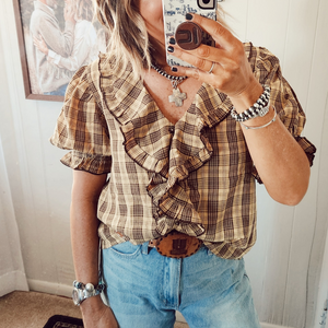 PLAID FLOUNCE COLLARED BLOUSE
