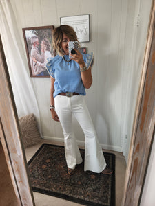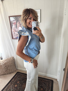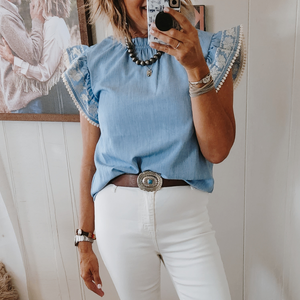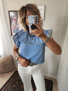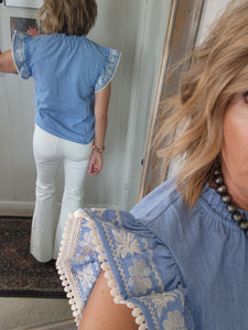 Embroidered flutter sleeves