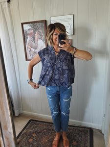 BANDANA/PAISLEY PRINTED CROP SHIRT