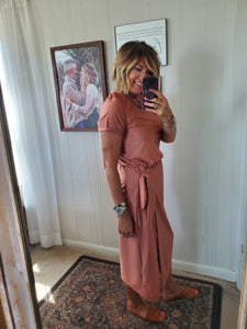 Elastic waist with self tie belt