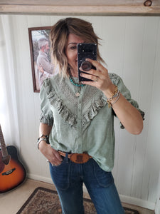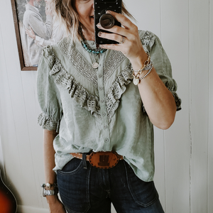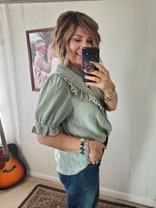 Lace trim detail at bust and sleeves